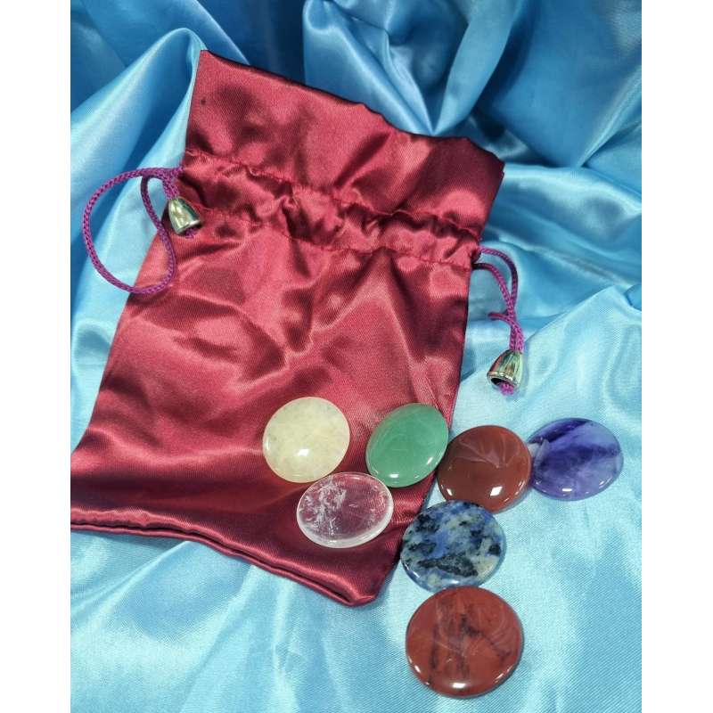 Juego de chapas calibradas de los chacras en tamaño pequeño. Todas las piezas tienen la misma medida de diámetro 23mm.