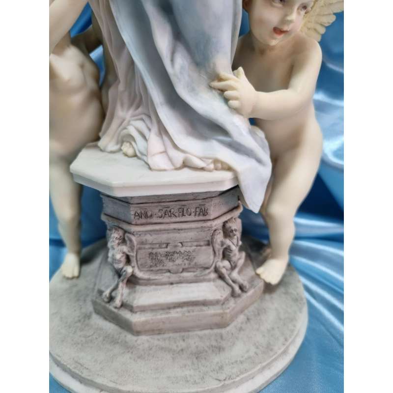 Escultura realizada por la prestigiosa firma Veronese símbolo de calidad inmejorable, en resina de alta densidad, pintada a mano en colores suaves con mucho detalle.