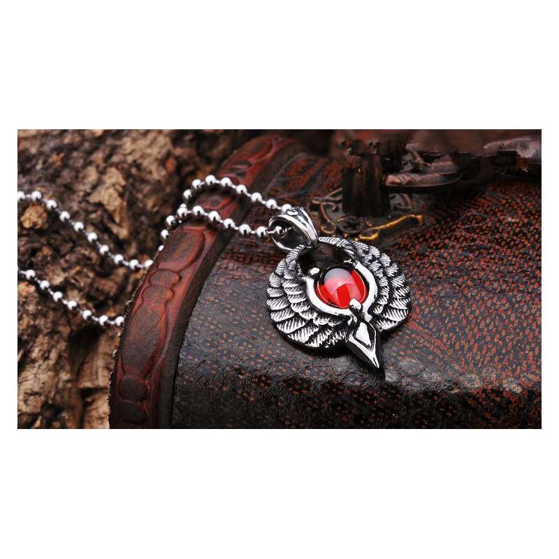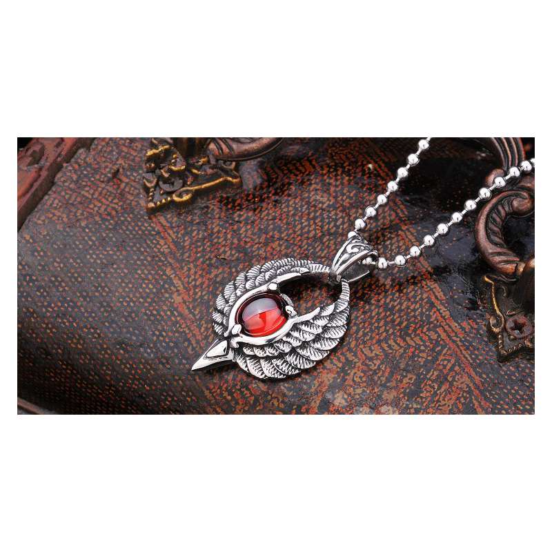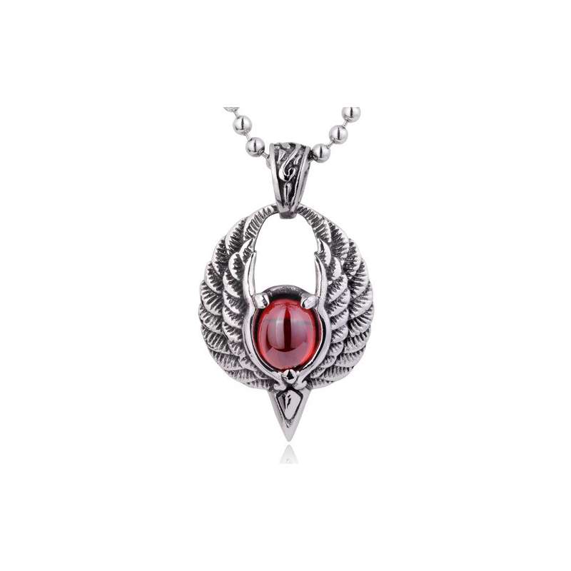 Colgante de las alas del Phoenix realizado en acero quirurgico con una piedra central en color rojo. Colgante de mucha calidad y con un precioso simbolo que son las alas de ave phoenix con su especial significado.