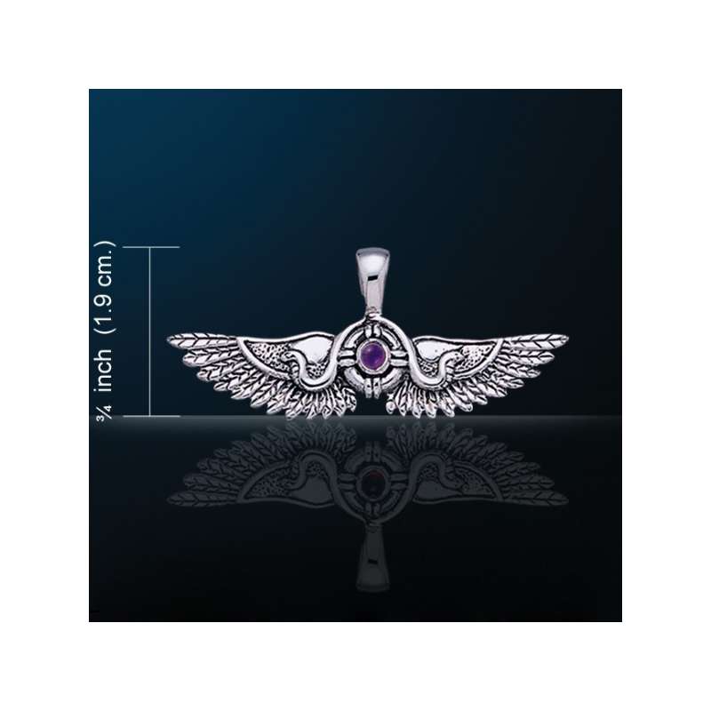 El Disco Alado Solar es una representación diferente del Dios legendario egipcio del cielo, Horus. Adorado como Horus de Behdet (una ciudad en el delta del sur), fue representado como un disco solar alado. Cuenta la leyenda que Ra (El Creador) ayudó a Horus, para luchar contra Seth (Dios del Caos) y le ayudó a vencer . Con la ayuda de Thoth (dios de la sabiduría y la magia), Horus se convirtió en un disco solar con magníficas alas extendidas. Las diosas Nekhbet y Uazet se unieron a Horus en forma de serpiente uraeus, para protegerlo contra Seth. Cuando los dos ejércitos se encontraron, Horus voló directamente hacia el Sol, y tan feroz era su mirada (el calor del mediodía) que sus enemigos se confundieron y se atacaron unos a otros. Así Horus ganó la batalla.
