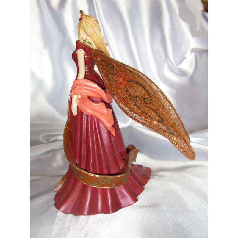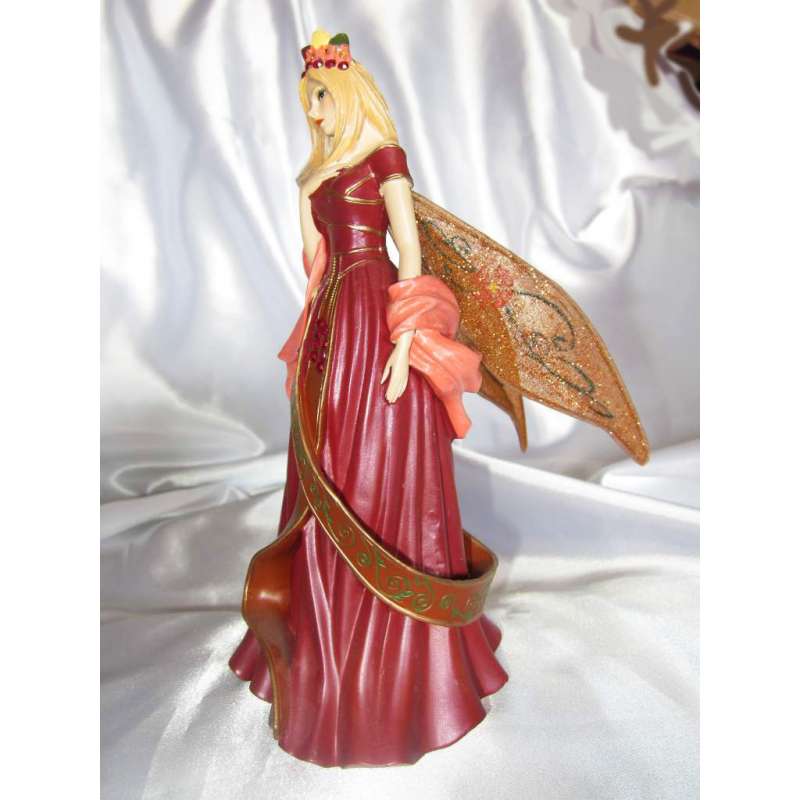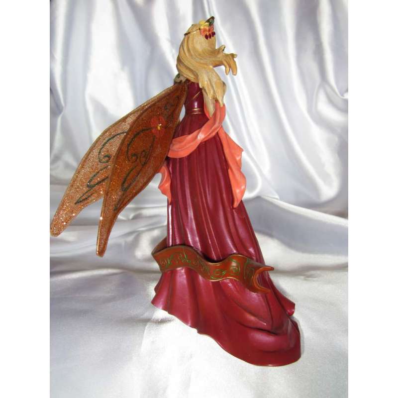 Bajo la mirada artística de Brooke, se ha creado en porcelana fría, moldeado y pintado completamente por maestros artesanos su reina de verano con una calidad y una atención al detalle impresionantes. Los volantes de su vestido de oro ... la cima de su corona enjoyada ... la curva de sus alas suaves. Todos los matices se forman cuidadosamente a mano por artistas con talento y luego sus pinceles le aportan delicados tonos deslumbrantes, cada figura está realizada individualmente por lo que ninguna es igual a otra. De un brillo excepcional, brillantes gemas de imitación y brillo son por lo que su "Reina del Equinoccio de Otoño" es una pieza excepcional y una adquisición muy importante en cualquier colección de hadas de alto nivel.
