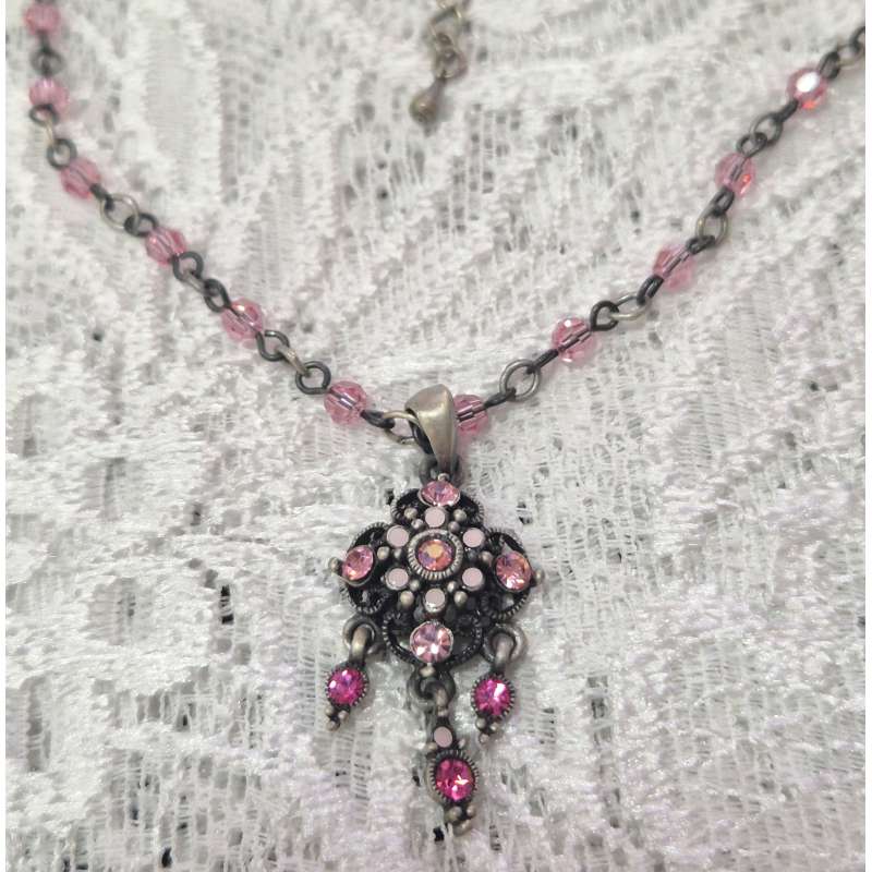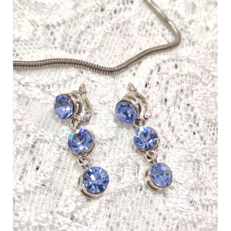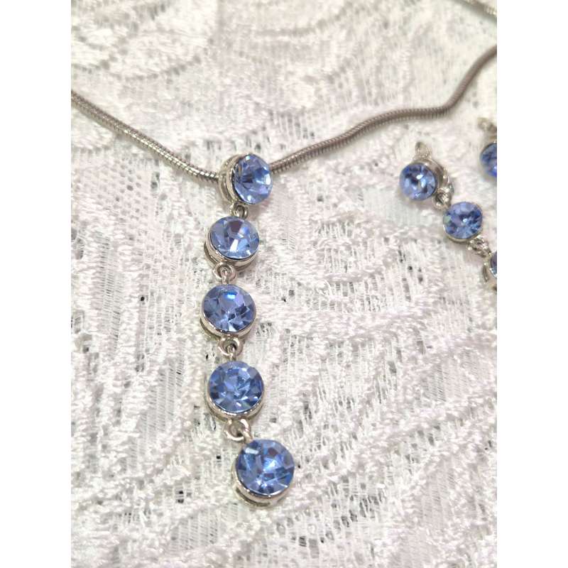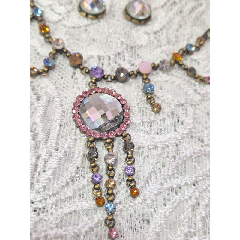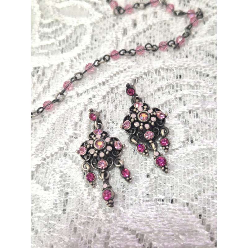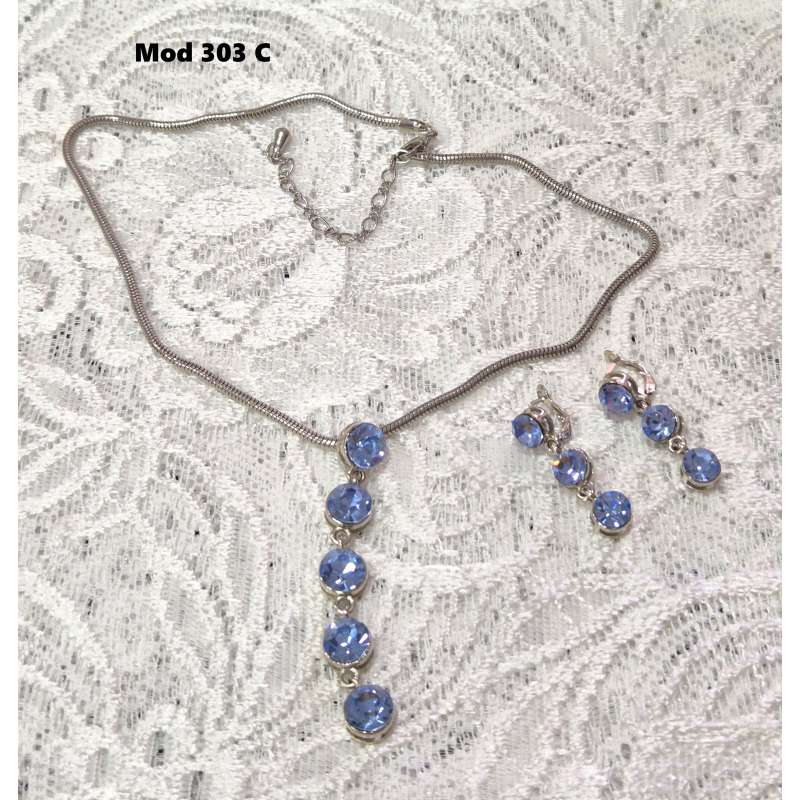 Bellos conjuntos de pendientes y gargantilla, realizado en rodio envejecido antialergico con cristal austriaco de primera calidad.