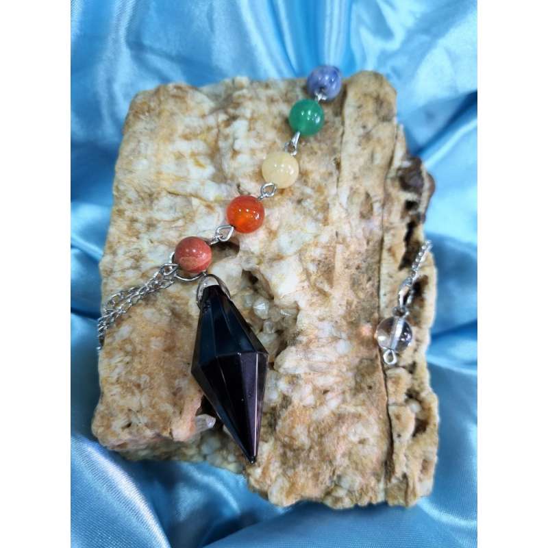 Péndulo de Onix negro multifacetado con cadena de los siete chakras.