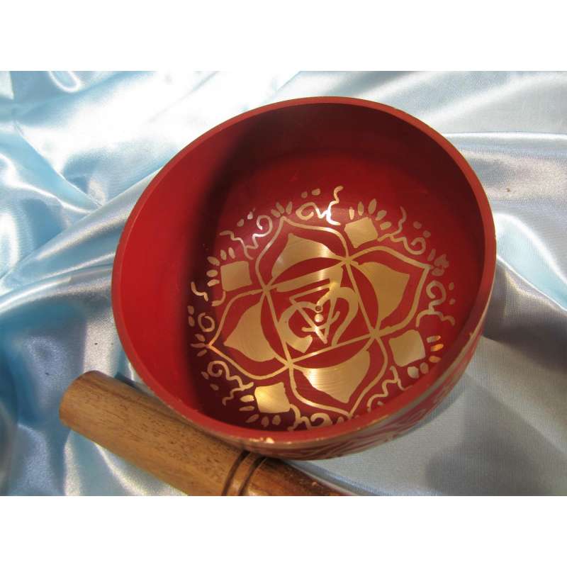 Cuenco tibetano rojo realizado según las técnicas milenarias de los monjes tibetanos en una mezcla de 7 metales, tiene una vibración positiva muy alta, es un cuenco especial para los principiantes.