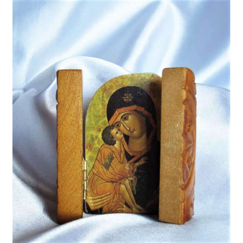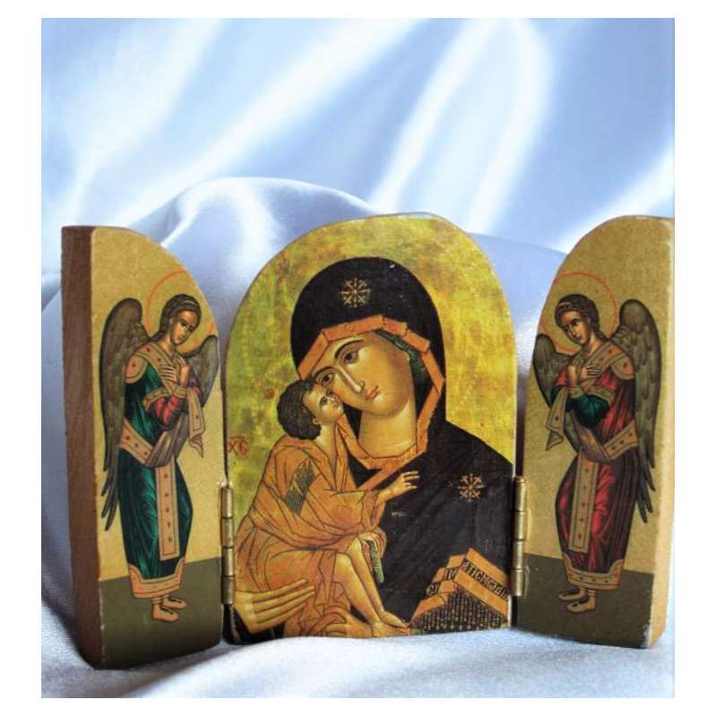 El icono triptico religioso de la Virgen Vladimir es una copia al original de la iconografía bizantina, está hecho a mano