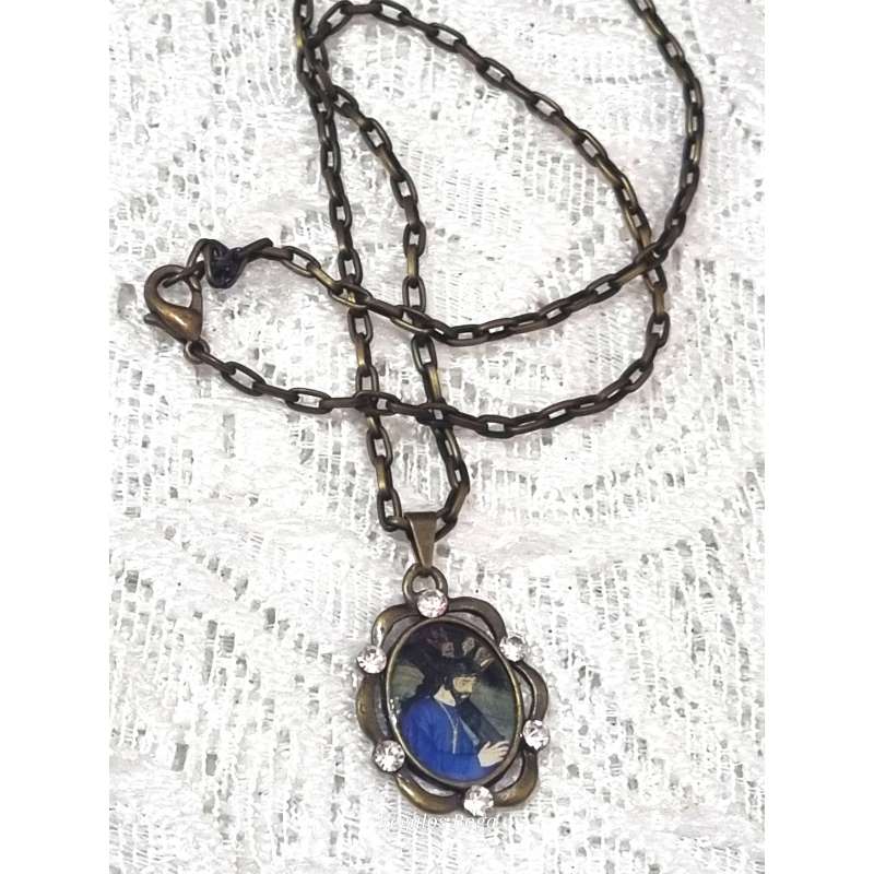 Una sencilla medalla realizada en bronce envejecido con una imagen policromada de Nuestro Padre Jesús Nazareno con su correspondiente cadena en el mismo color sepia.