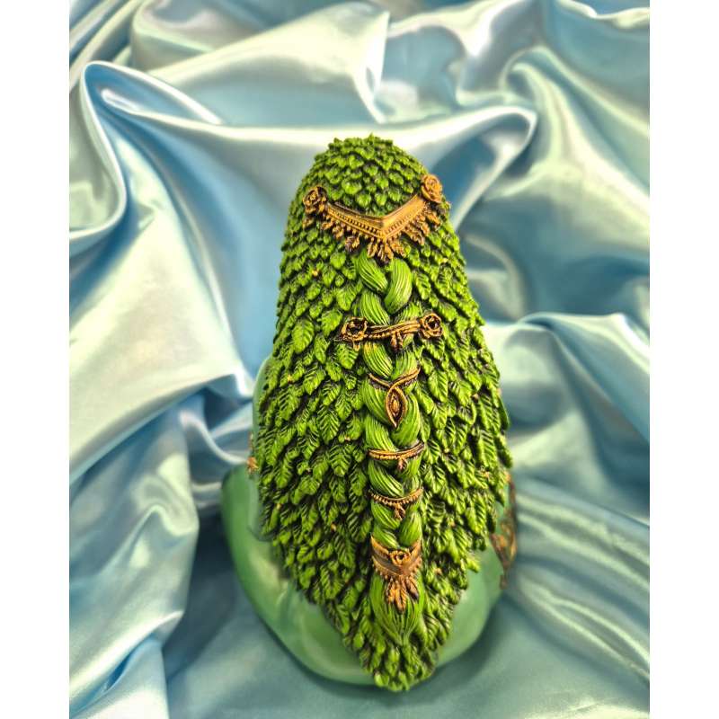 Con sus brillantes tatuajes y joyas exquisitamente elaboradas en su larga cabellera, con hojas verdes detalladamente esculpidas y una larga trenza, esta figura de Gaia es un hermoso regalo para una hermana o amiga.