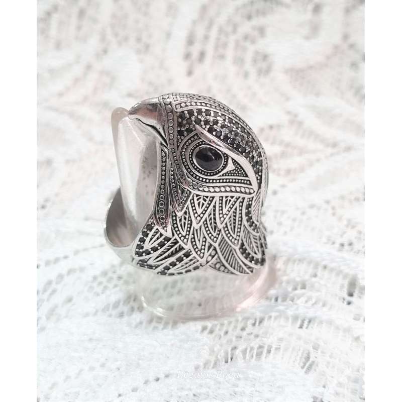 Una joya muy bella y delicada con una bella y magnífica cabeza de halcón con incrustaciones de piedras naturales, realizada en plata de ley 925.