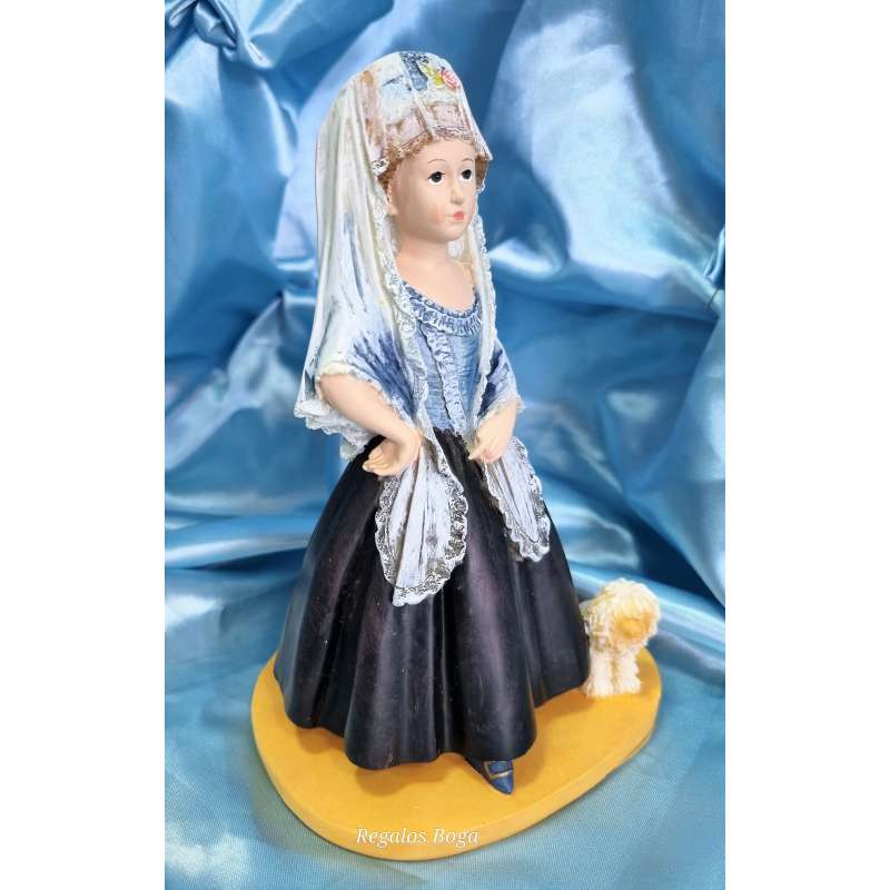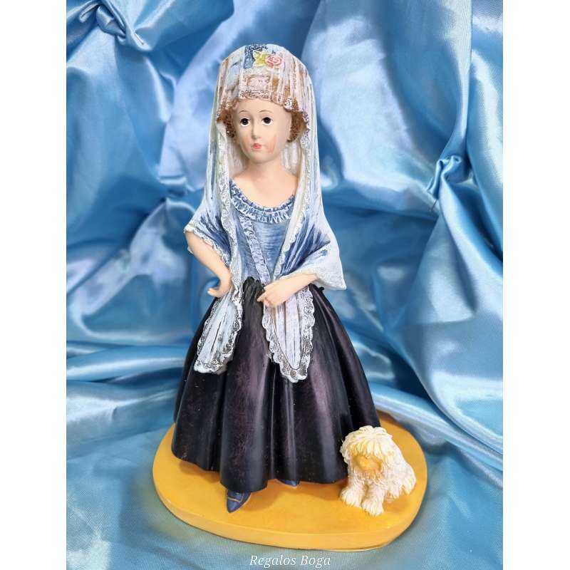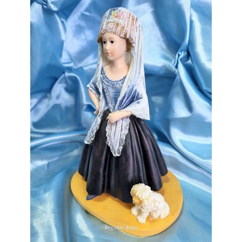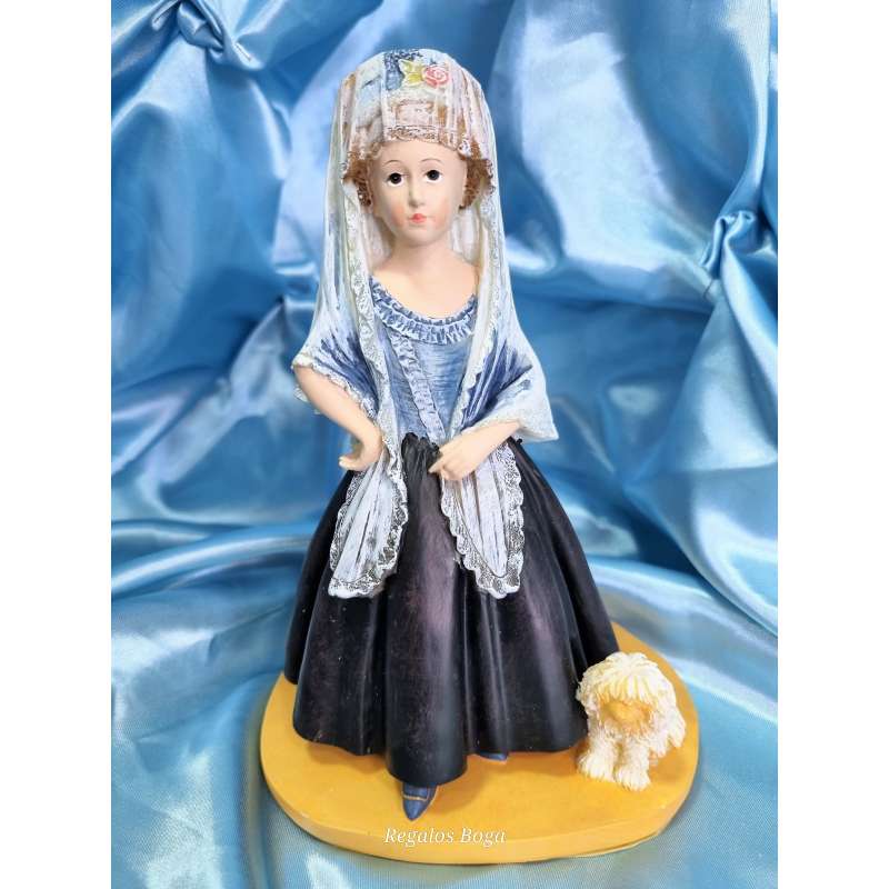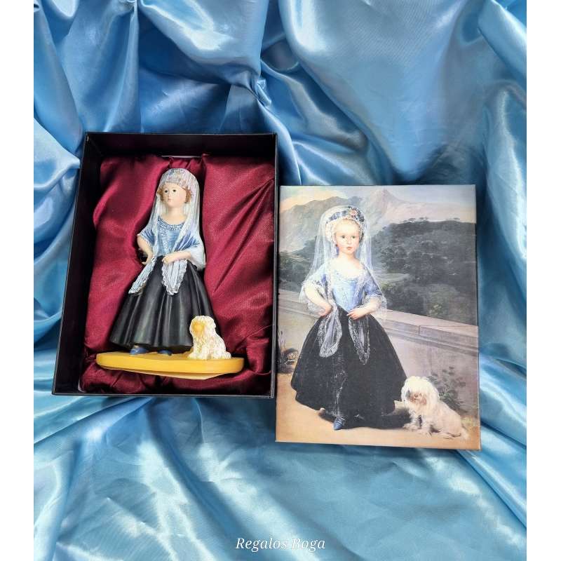 Figurilla realizada en resina, moldeada y pintada completamente a mano. Una replica del genial retrato pintado por el maestro Francisco de Goya a la futura condesa de Chinchón de niña, Maria Teresa De Borbón hija del infante Luis Antonio de Borbón hermano menor de Carlos III, el infante fue expulsado de la corte por contraer matrimonio morganático con la aristócrata aragonesa Maria Teresa de Villabriga y Rozas.