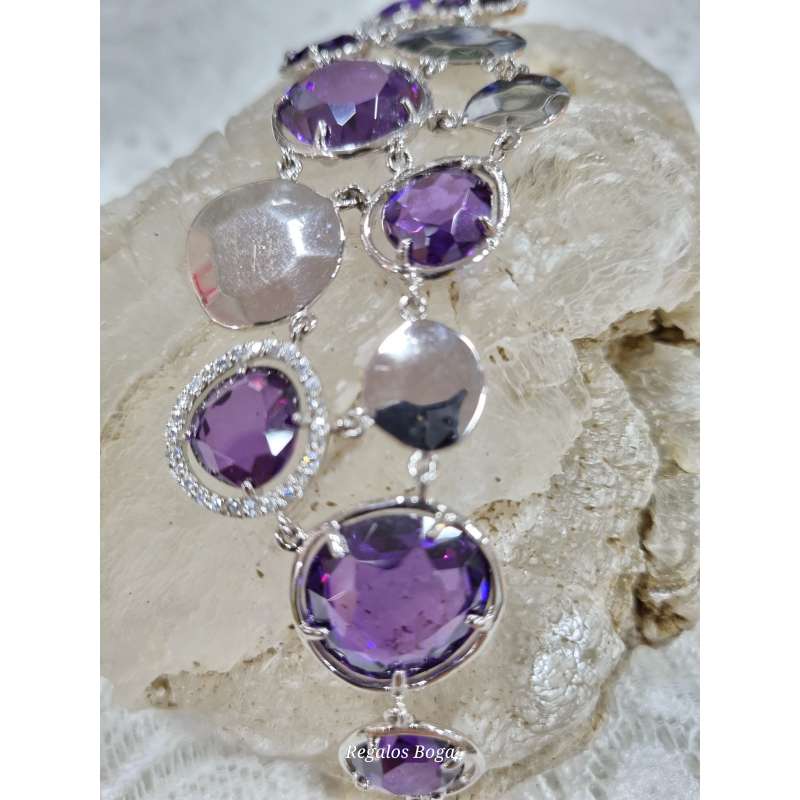 Festejar momentos inolvidables junto a la persona querida no tiene precio! Una pulsera única realizada en plata italiana 925 y circonitas de color morado.