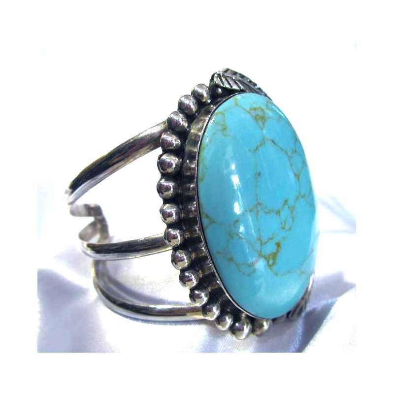 Pulsera-brazalete realizado en plata mexicana y piedra natural Turquesa.