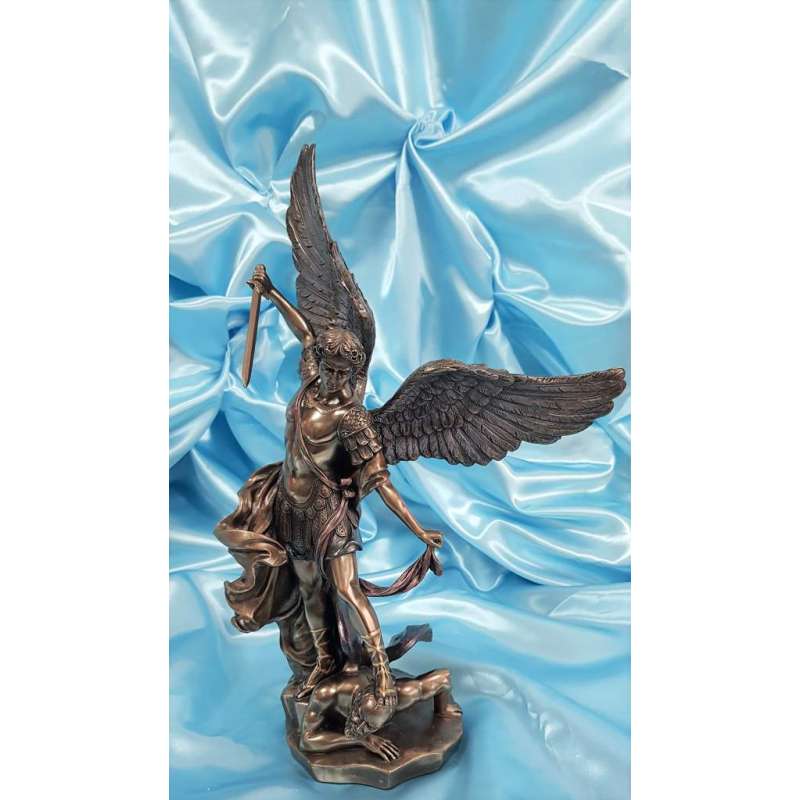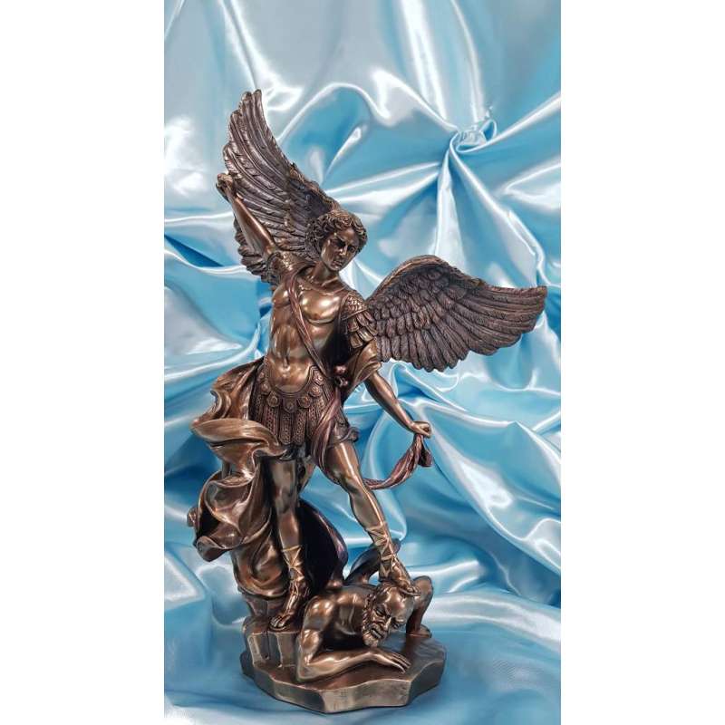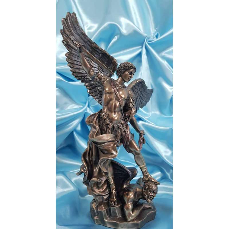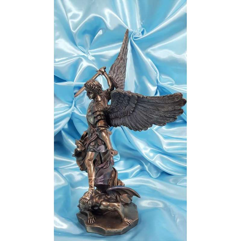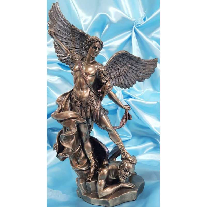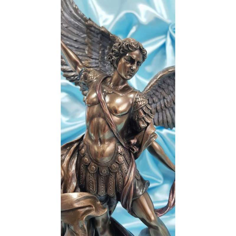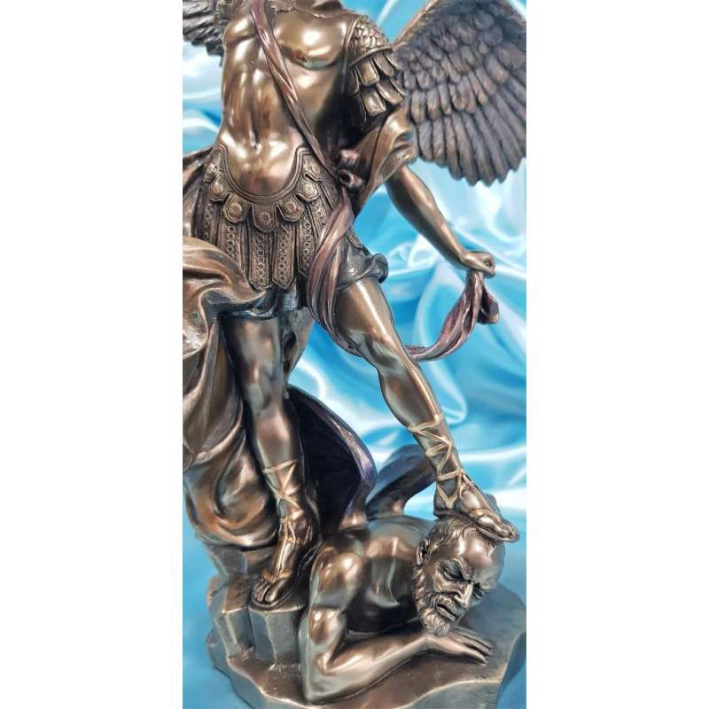 Es una maravillosa adaptación de la famosa pintura "San Miguel matando al diablo" por el artista barroco italiano Guido Reni (1573-1642).