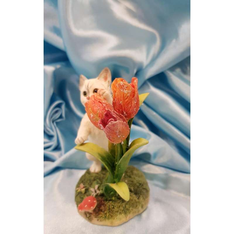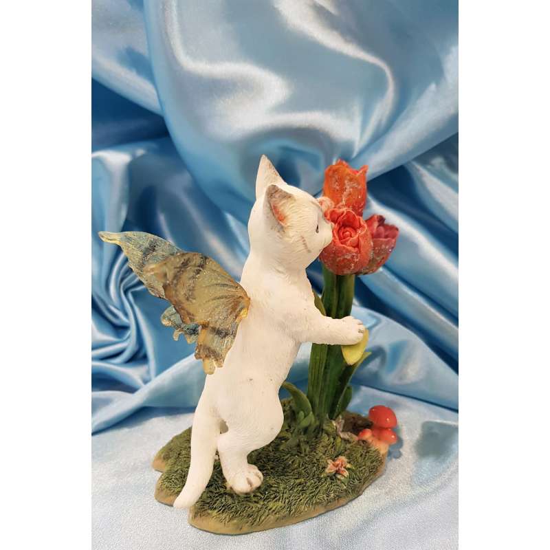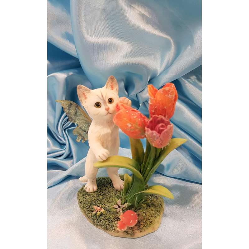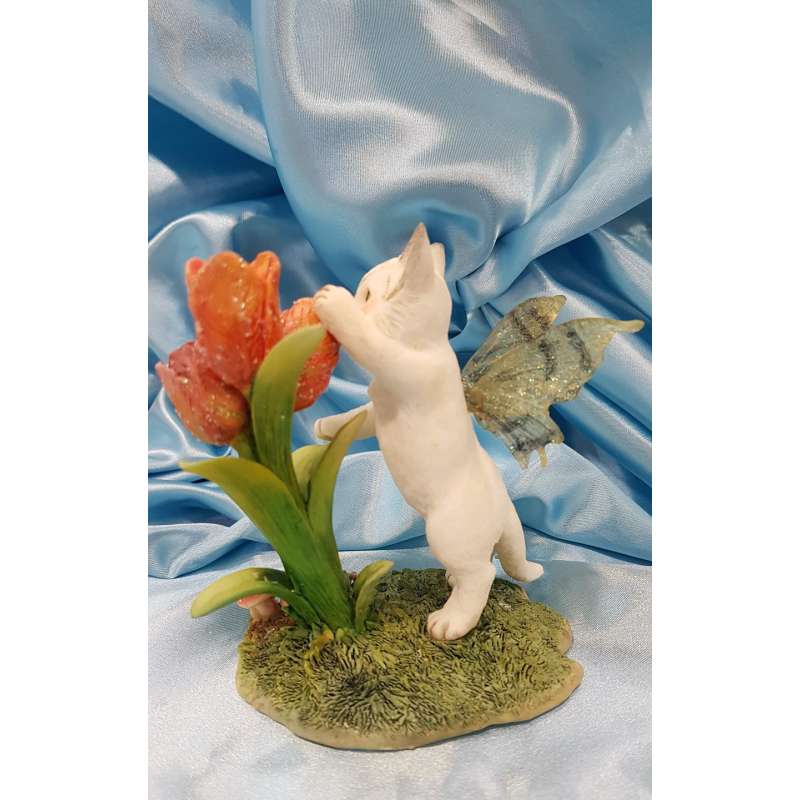 Cada uno de estos adorables gatos hada se moldean y pintan completamente a mano con una delicada atención a los detalles.
